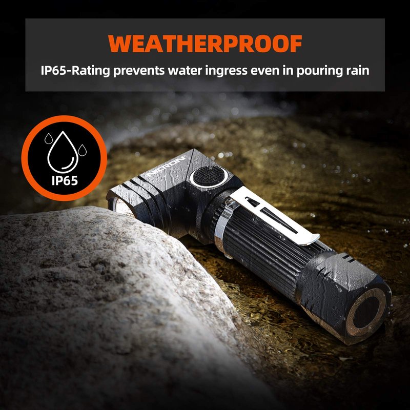- TOUGH & RELIABLE: IP65-rated water resistant and designed for heavy rain day. - Compact and tough as nails, this flashlight can survive a 4 feet drop or being temporary submerged in water. Some reviewers have even put It in a freezer and run it over with a truck and it will still work! Suitable for use in rain, snow, or emergency situations.Energy saving settings - if not in use, we recommend simple thing to "lock the unit out" just by unscrewing the tail cap a few turns.