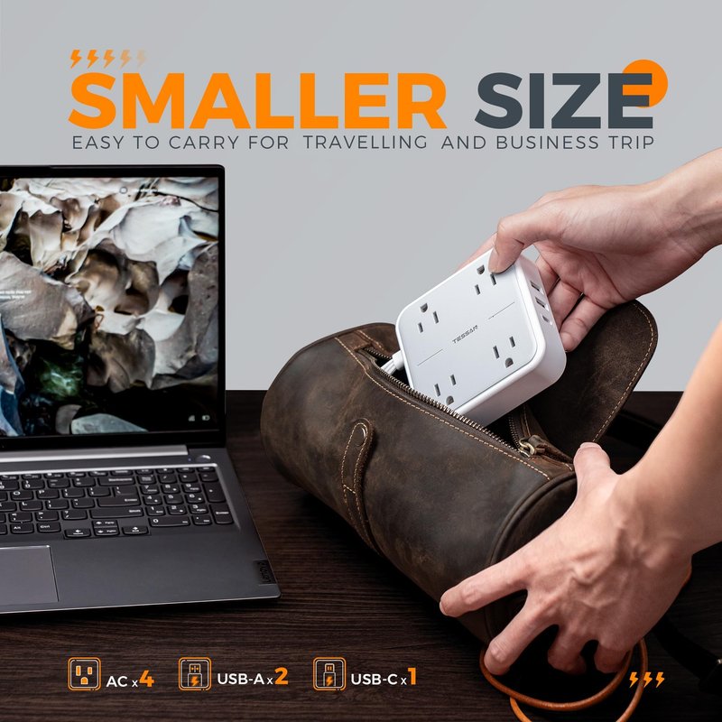 - 7 in 1 Desktop Power Strip: This flat extension cord is rated at 1250W; It can turn 1 socket into 4 AC outlets and 3 USB ports, can charge 7 devices simultaneously without blocking, keep your desktop organized; You can use it in any indoor place such as home, office and dorm room