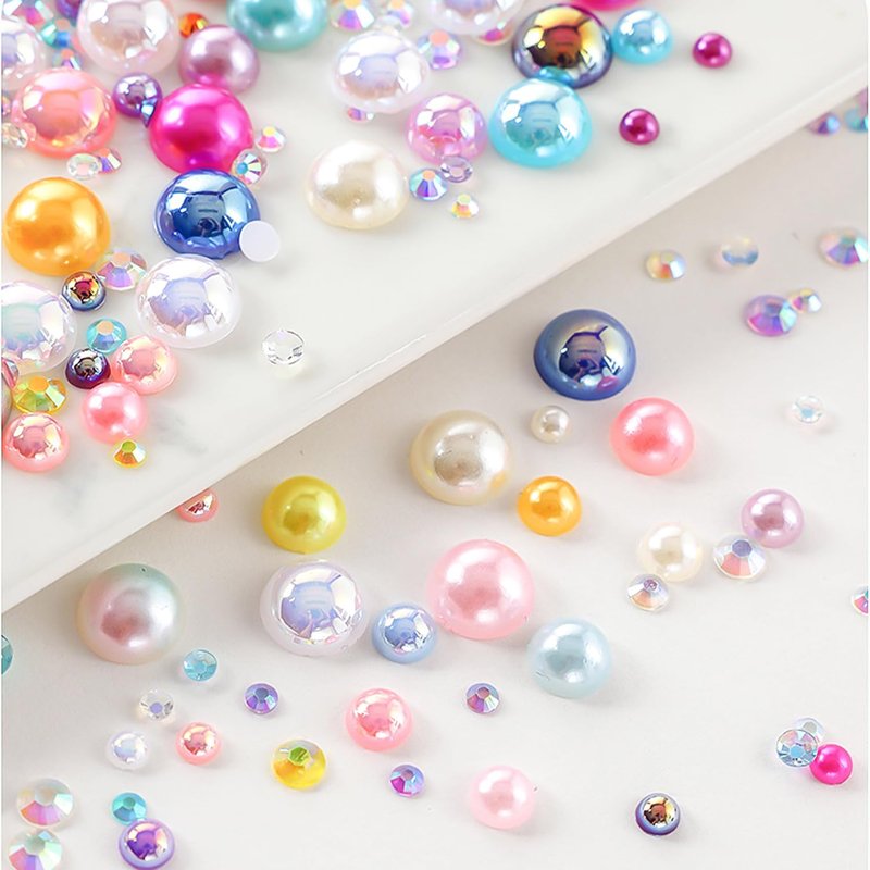 - Package Included:You will receive 30g mixed size & mixed color flat back pearls and rhinestones it's about 1400PCS,Meet all kinds of DIY needs