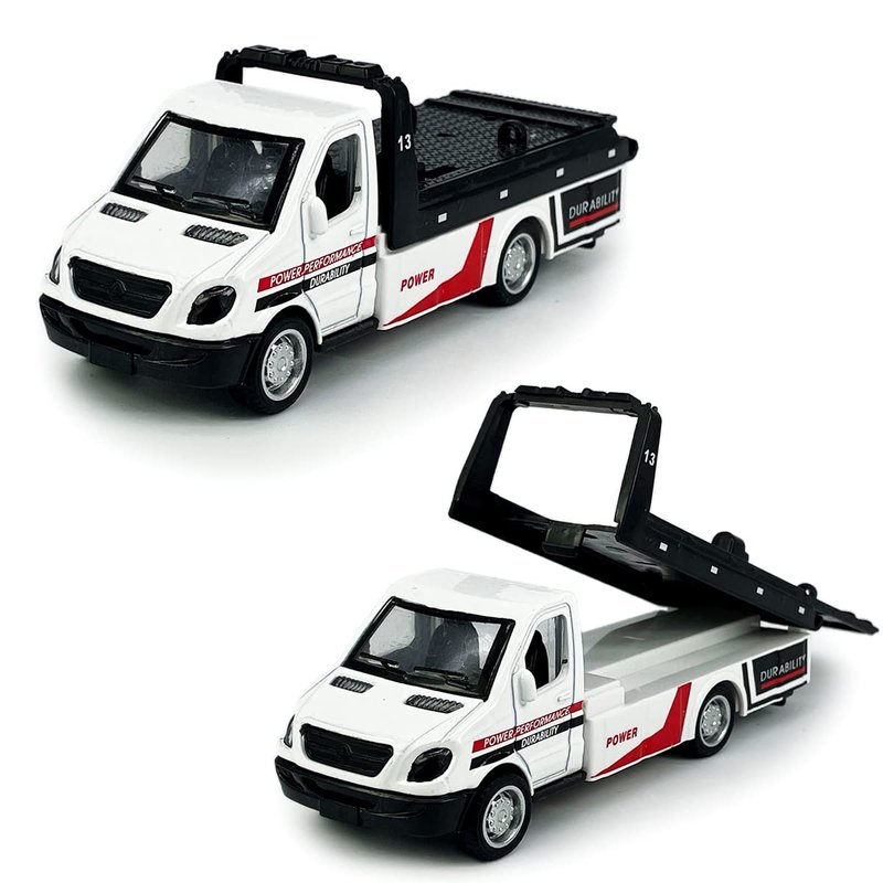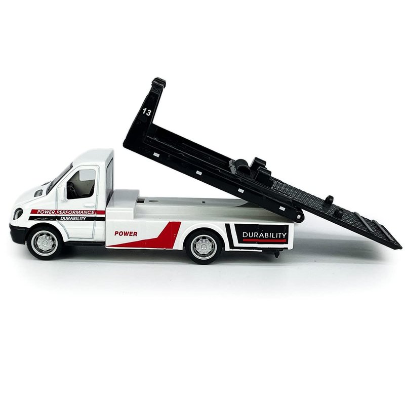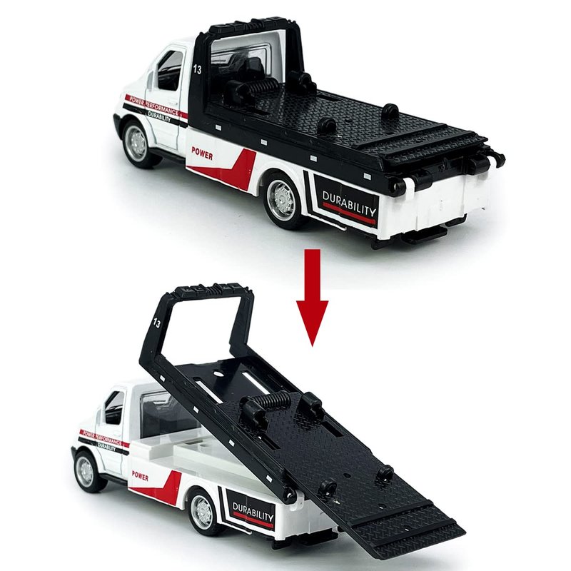 Flatbed Truck Toy Rescue Tow Truck Transport Trailer Car Carrier Metal Diecast Pull Back Vehicles 2 in 1 Vehicle Playset Toy Trucks for Boys Kids Toddlers Birthday Gifts for Age 3 4 5 6, White