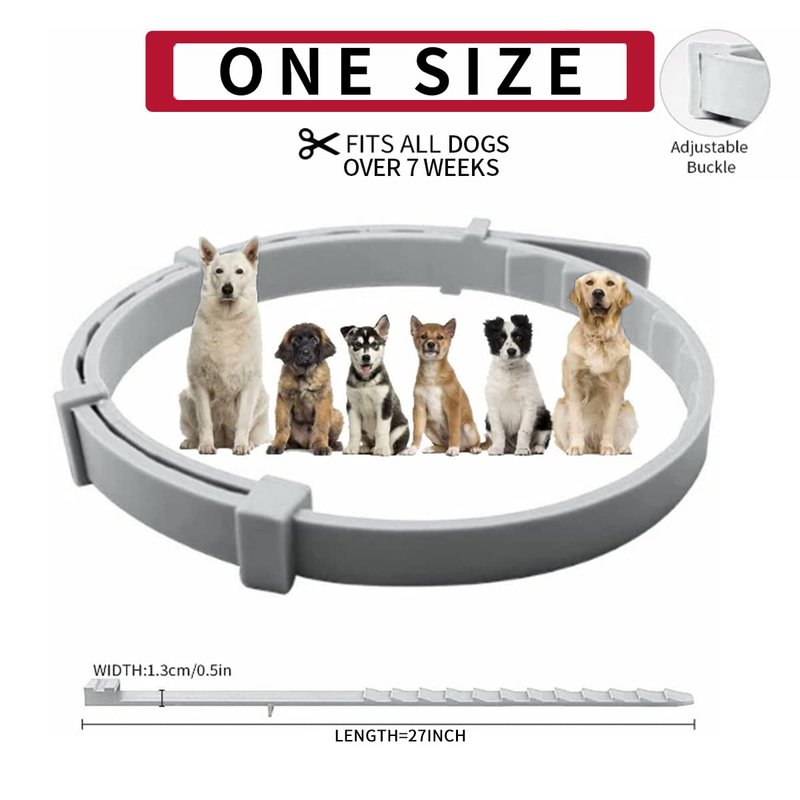 - 【Adjustable Size】:2 pack. The full length of this dog collar for fleas is about 27". You can adjust it to fit over 18lb dogs (better for large dogs). Adjust it around your dog’s neck, and leave a few inches