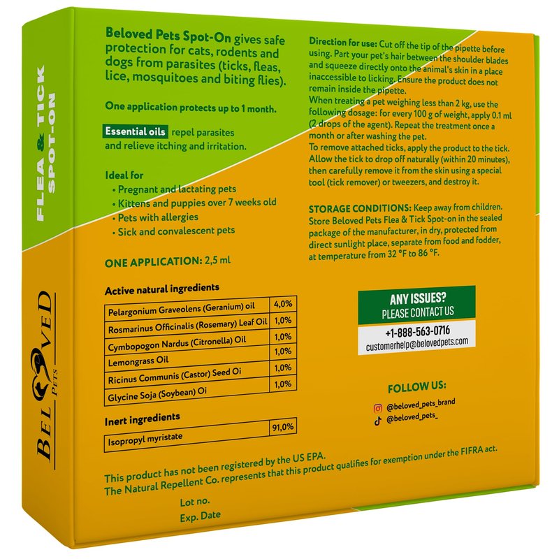 GreenFort NEO Bio Spot-On is one of the best flea & tick prevention for dogs, cats and rodents by Beloved Pets Inc. New Formula developed by the best veterinarians allows you to make protection for your pet from parasites as effective as possible. Сreated on natural ingredients (natural essential oils), GreenFort NEO Bio Spot-On provides gentle protection for your pet from parasites such as fleas, ticks, withers, mosquitoes, flies, horseflies for three months minimum.