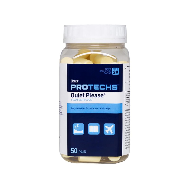 Flents Foam Ear Plugs, 50 Pair for Sleeping, Snoring, Loud Noise, Traveling, Concerts, Construction, & Studying, Contour to Ears, NRR 29, Beige