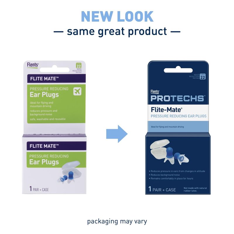 Flents Reusable Ear Plugs, Ideal for Flying And Mountain Driving, Reduces Pressure And Background Noise, 1 Pair With Travel Size Case, Easy Use With Comfort Fit, NRR 29, Blue, Made In The USA