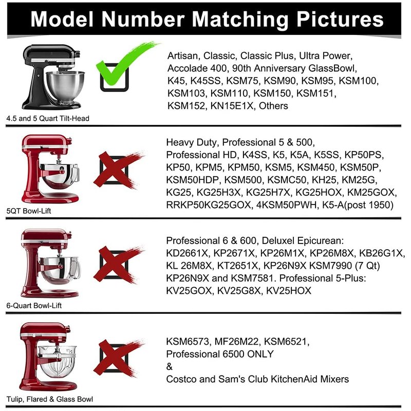 5. Compatible with 4.5 and 5 QT for Tilt-head stand mixers, including K45SS, KSM1, KSM100, KSM110, KSM120, KSM15, KSM16, KSM75, KSM8 and KSM9 models.
