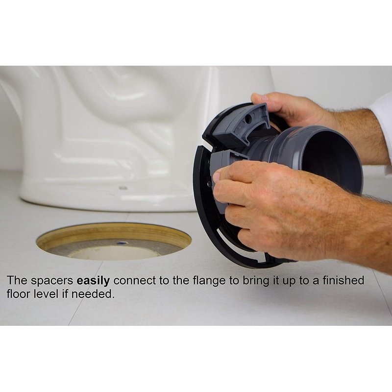 FlexOn Toilet Flange for 4" PVC, ABS, Cast Iron or Lead Pipes-Includes Spacer System to Correct Flange Elevation from 3/8"-1 1/8"