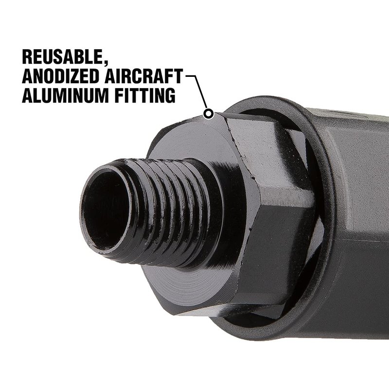 - EXTREMELY DURABLE – All fittings are made with anodized aircraft aluminum, making them crush resistant and durable for all environments, and the spiral bend restrictor provides increased hose flexibility.