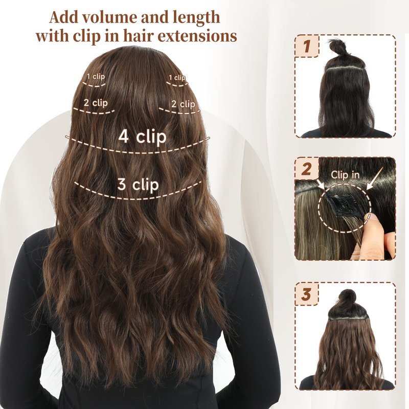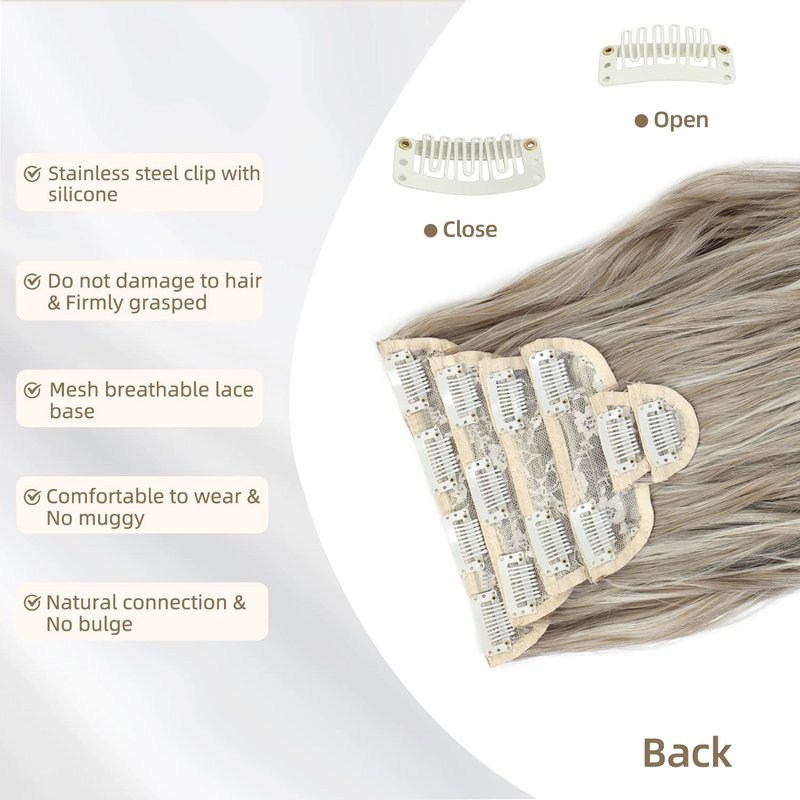 - 【More Hair Extensions】Fliace clip-in hair extensions are available in a set of 6 pcs hairpieces, 220g for hair with clips: 1 piece of 6.7 inches wide 4 clips in weft, 1 piece of 5.5 inches wide 3 clips in weft, 2 pieces of 4.9 inches wide 2 clips in wefts, 2 pieces of 2.2 inches wide, 1 clip in wefts.