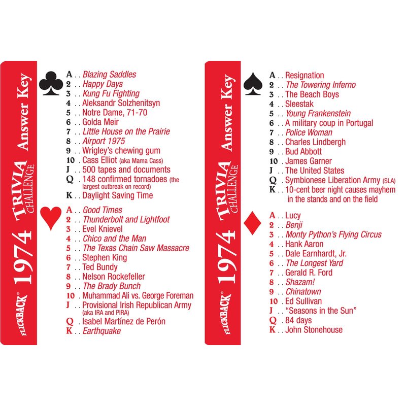 Flickback 1974 Trivia Playing Cards: Birthday or Anniversary Cards