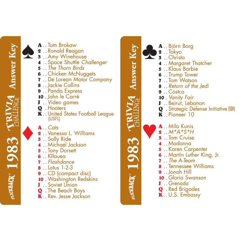 Flickback 1983 Trivia Playing Cards Birthday or Anniversary