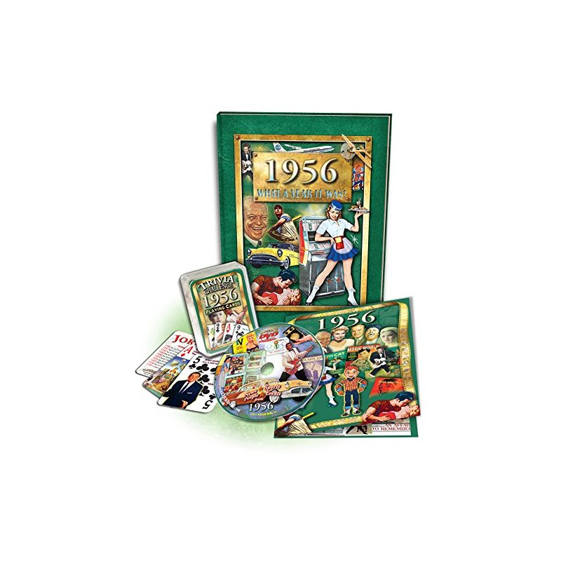This Flickback Gift Set is a combination of Flickback Media's 1956 DVD Greeting Card, 1956 Flickback Trivia Playing Cards, and 1956 What A Year It Was! book, together they make a perfect gift set for 50th Birthdays, Anniversaries & Reunions.