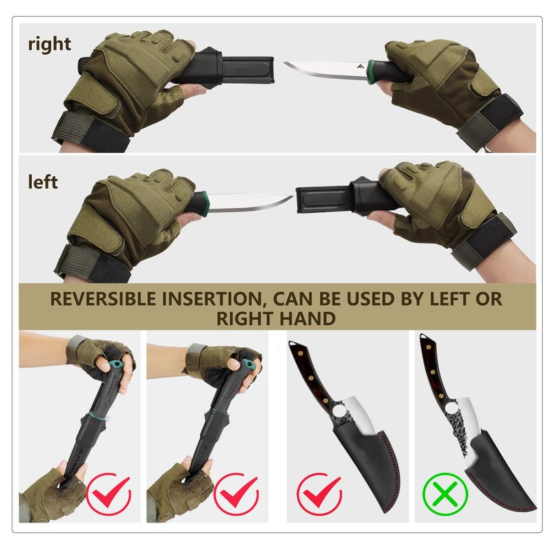 - SHEATH FOR EVERY DAY CARRY: Nylon sheath back with a clip, can be pinned to the waist or bag, easy to use and carry every day; Outer side of the sheath has protruding ears, which is convenient to pull out the knife from the sheath; Sheath shape fits the knife, the knife won’t be easy to fall out after being completely inserted, which increases the safety; And it isn’t necessary to specify the direction of positive and negative insertion, the knife can be inserted at will.