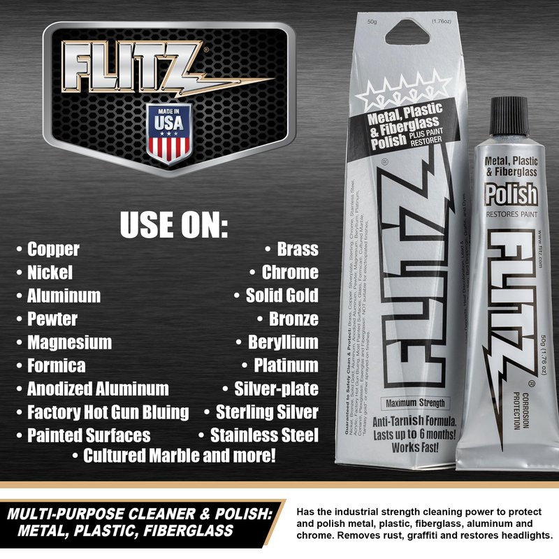 Flitz Metal Polish and Cleaner Paste, Also Works on Plastic, Fiberglass, Aluminum, Jewelry, Sterling Silver - Headlight Restoration and Rust Remover - Made in the USA - 1.76 OZ