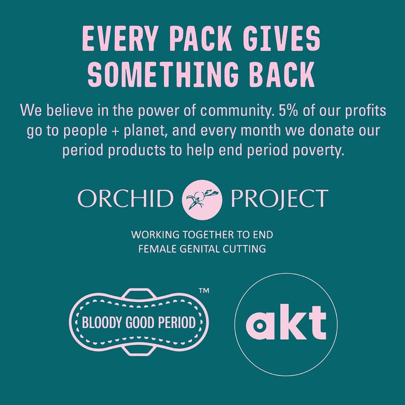 - Sustainable packaging: our eco-friendly organic pads are biodegradable and individually wrapped in 88 compostable, plant-based, plastic-free wrappers for on the go, packed in a 100% recyclable box