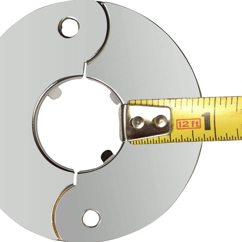 Floor and ceiling plates also known as escutcheon plates are used to cover and close the gap between the outside diameter or the pipe and the inside diameter of the wall, floor, or ceiling opening to avoid damage and leakage. This Floor and Ceiling Plates are designed for use in tubular drain applications. Please measure your pipe accordingly and make sure that it matches the measurements on this description. Fits 3/4 inch IPS (3/4" Outside Diameter) Galvanized Pipe or 1 (1" Outside Diameter) inch Copper Pipe. Hole diameter is 1.05 inch (26.67mm) and outside diameter is 2.83 inches (72mm). It also has a wide range of application. You can install it for your faucet, toilet, sink, radiator, heater, pvc pipes, gas pipes, and many more. Experience a hassle free installation with no expert plumbing skills or tools needed. Simply split the flange to fit the pipe circumference and close the ends together to lock and protect the pipe and wall, floor, or ceiling opening from any damage and leakage