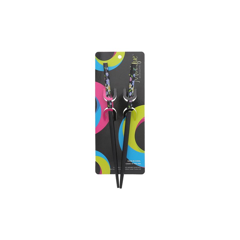 Floral Hair Sticks Chopsticks - Pack of 2-Black