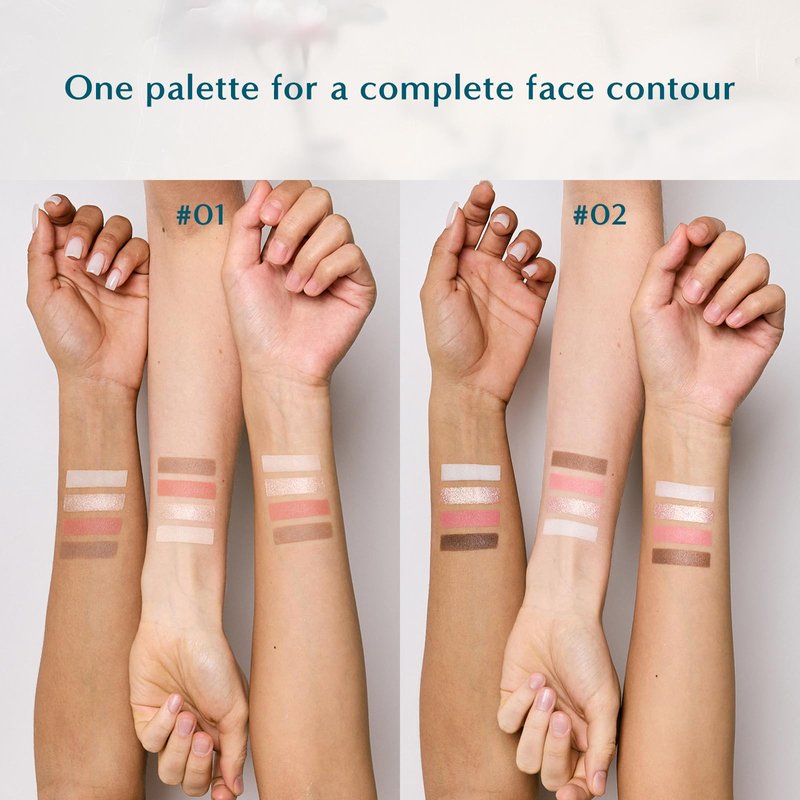 - A 4-in-1 Palette for Every Dimension: Compact in every sense and highly multi-functional, this palette contours, highlights, blushes, and works as eyeshadow. 4 essential shades composed of rich shimmer and sueded matte textures that you can use dry or wet to emphasize your features and craft limitless looks.
