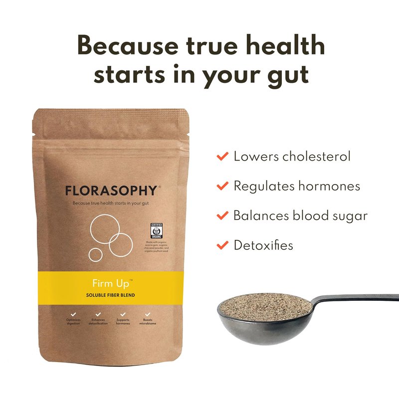 Florasophy's Firm Up soluble fiber supplement improves consistency of bowel movements and helps relieve diarrhea and symptoms of irritable bowel syndrome (IBS). Like all of our formulas, Firm Up also optimizes digestion, enhances detoxification, helps regulate hormones, and boosts your microbiome.