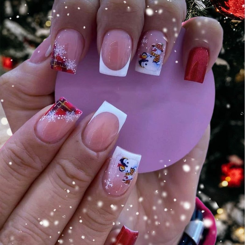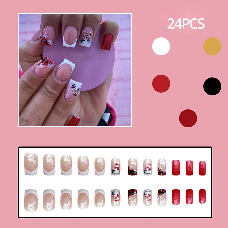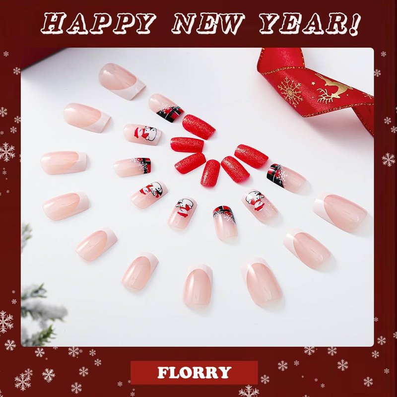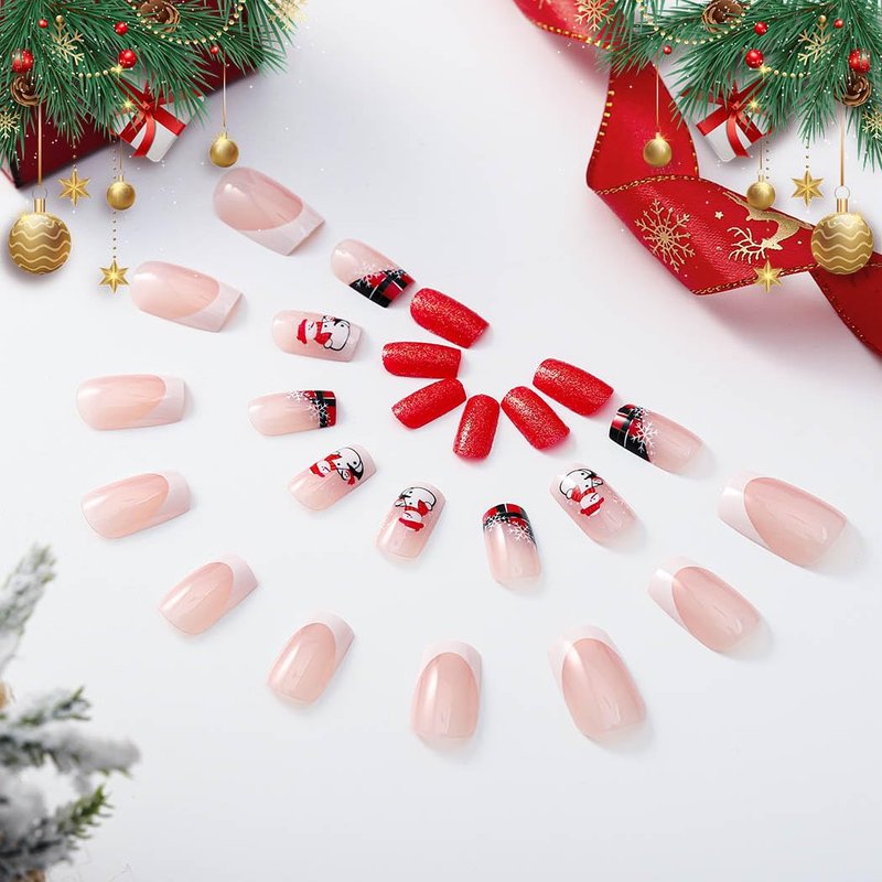 - Christmas press on nails short has 12 different sizes to fit most people.We will give you a manicure stick, you can easily trim and file your nails to any length and shape as you like