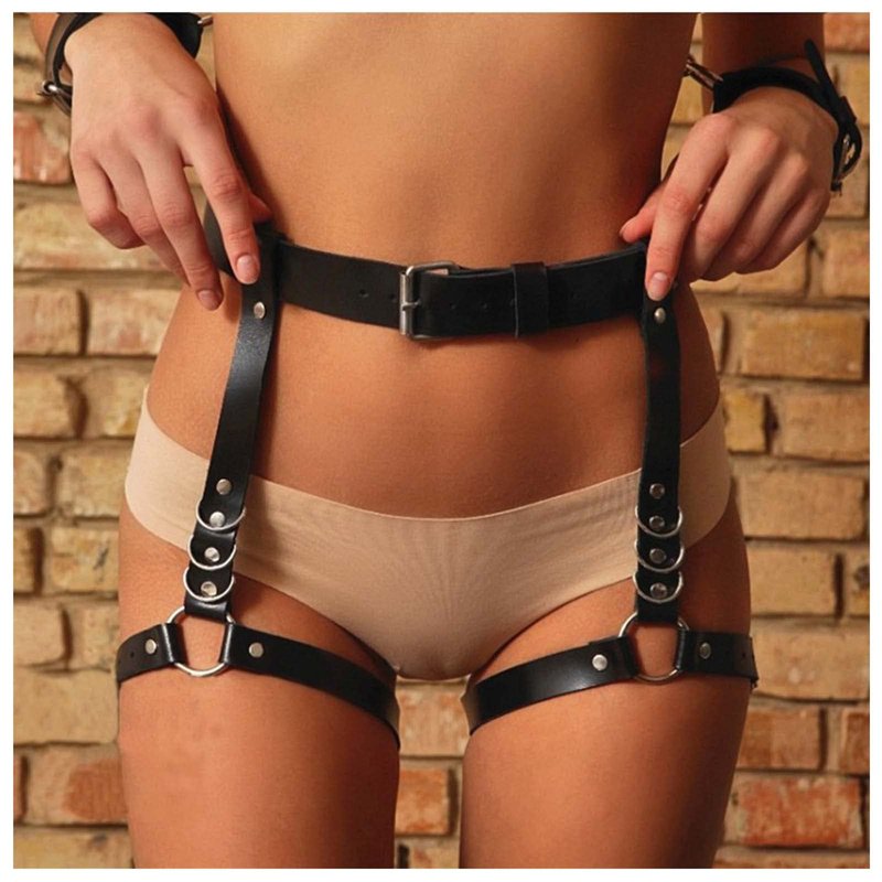 Florry Sexy Leather Waist Chain Black Punk Garter Belts Nightclub Rave Thigh Harness Jewelry Fashion Belly Leg Body Accessories for Women