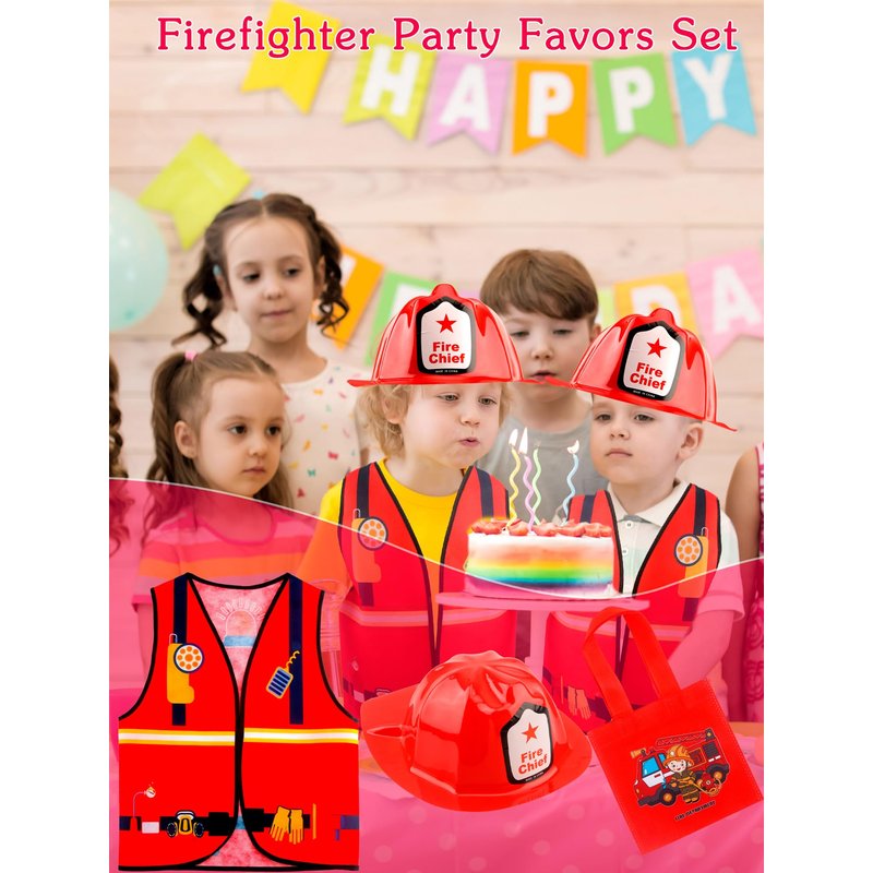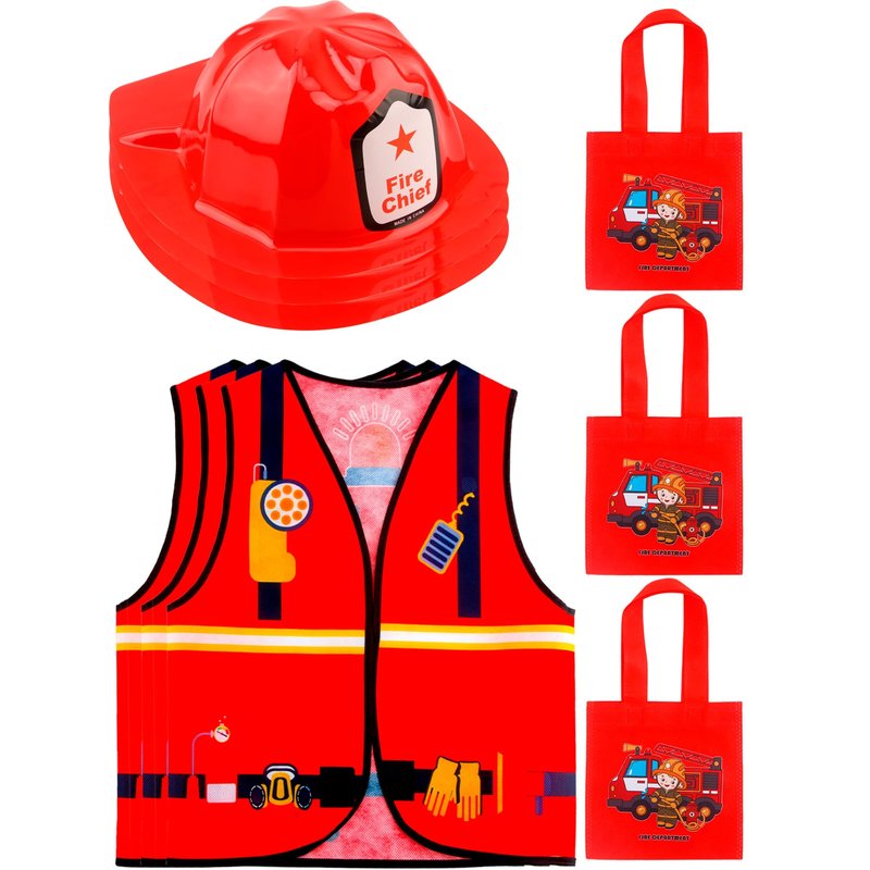 - 【Package Contents】: You will receive 3 red firefighter helmets, 3 red firefighter vests and 3 red firefighter tote bags, 9 pieces in total, enough as student rewards, or give them to children to share with friends to attract more people to the party