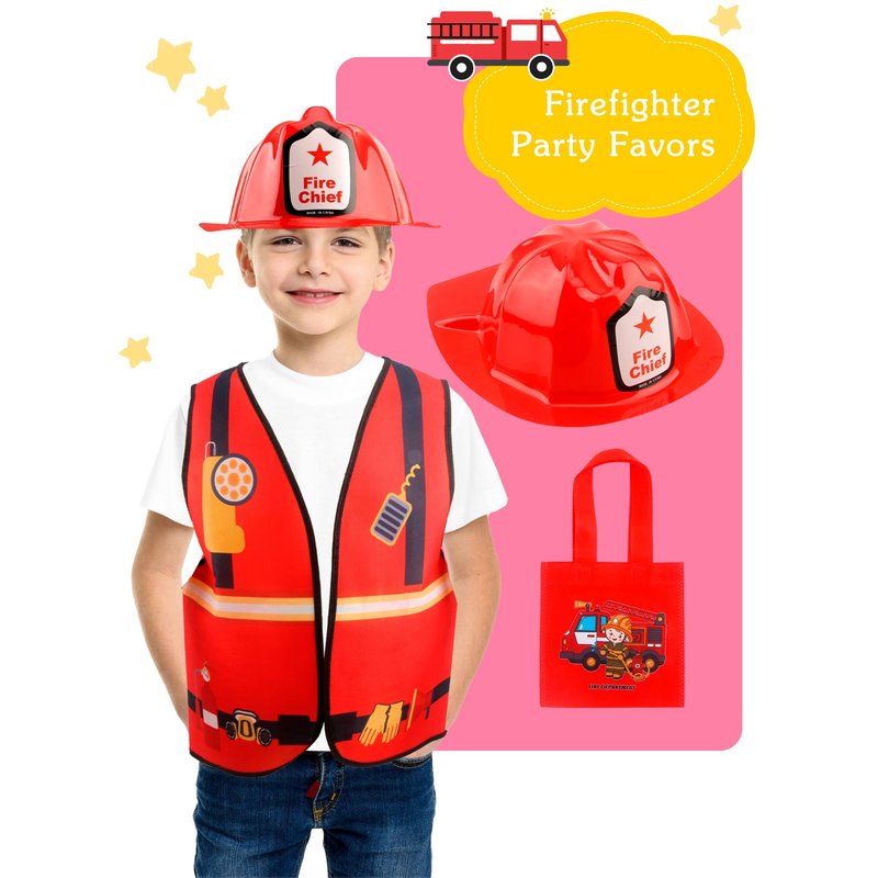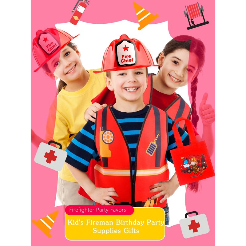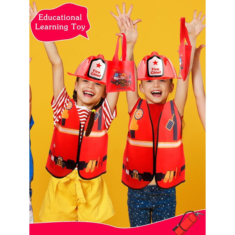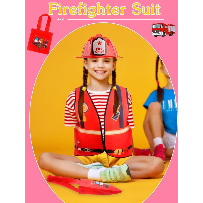 Flotory 9 Pcs Kids Fireman Costumes Include 3 Firefighter Vests 3 Fireman Helmets 3 Firefighter Tote Bag Firefighter Dress Up Set for Boys Girls Birthday Halloween Pretend