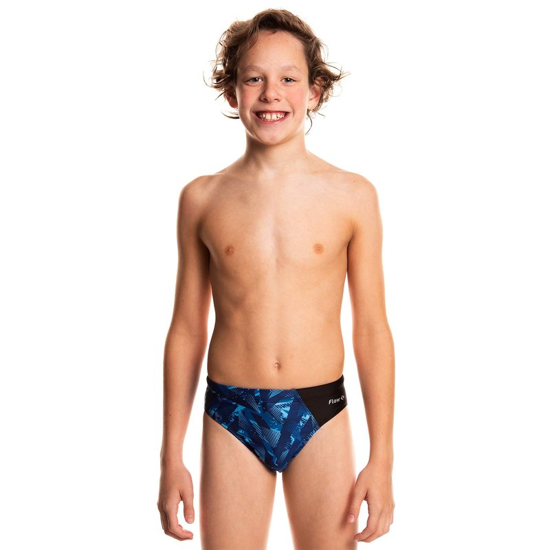 Flow Splice Swim Briefs feature a polyester spandex fabric that is the perfect combination of quality, comfort, and durability. Design details include a flat drawstring waist for a better fit, front inner lining for comfort, and sporty patterns for a stylish look. They are perfect for training at swim practice and racing at swim meets, but are also great for triathlon races, water polo, and any other water sport. Kids, teens, and young mens sizes available.