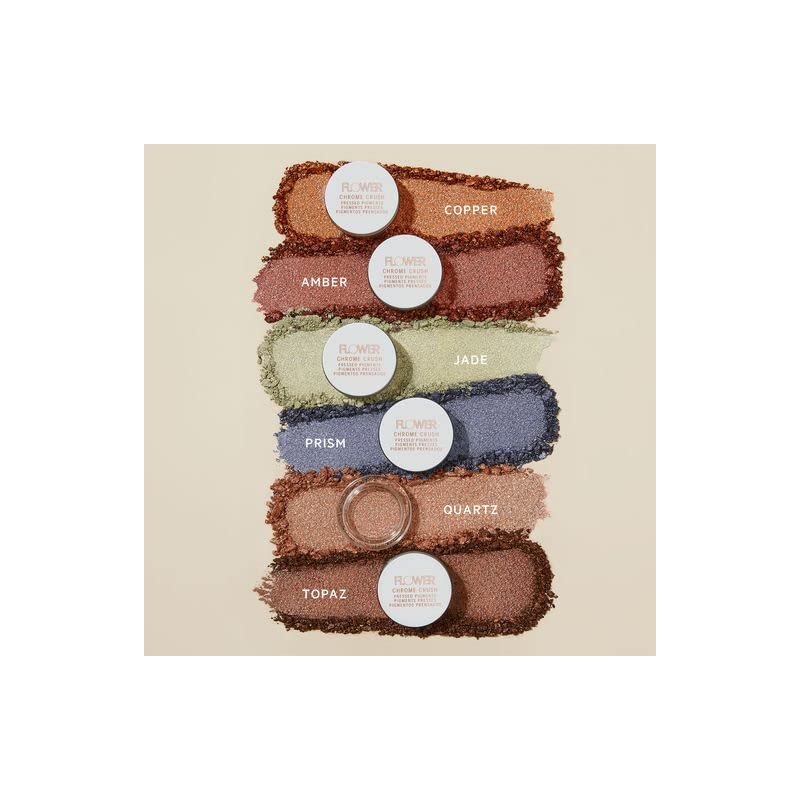 FLOWER Beauty Chrome Crush Pressed Pigments are formulated with incredibly fine micro-pearls and shimmering pigments for a beautiful, pressed glitter eyeshadow. The unique gel-powder texture creates a reflective, buildable dimension that can be worn alone for a delicate glimmer or layer on as an eyeshadow topper for an intense, metallic finish!