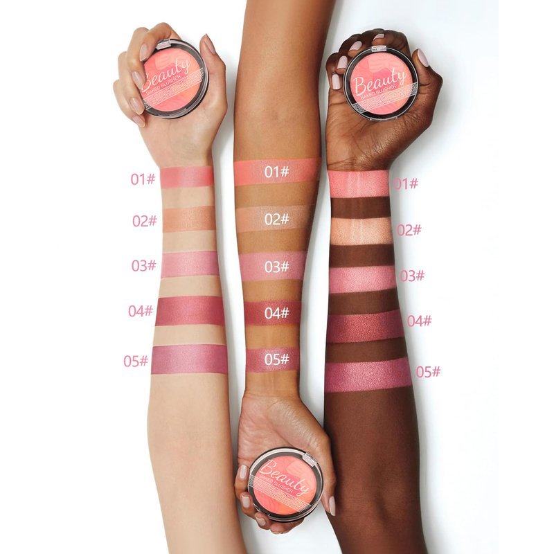- 5 Colors Blush For Cheeks - 5-color flower embossed blush palette, 5 color mixing light and dark combination, harmonious gradient, versatile and unrestrained, soft matte texture, delicate pearlescent particles, even color development, a touch of natural good color, suitable for all skin tones.