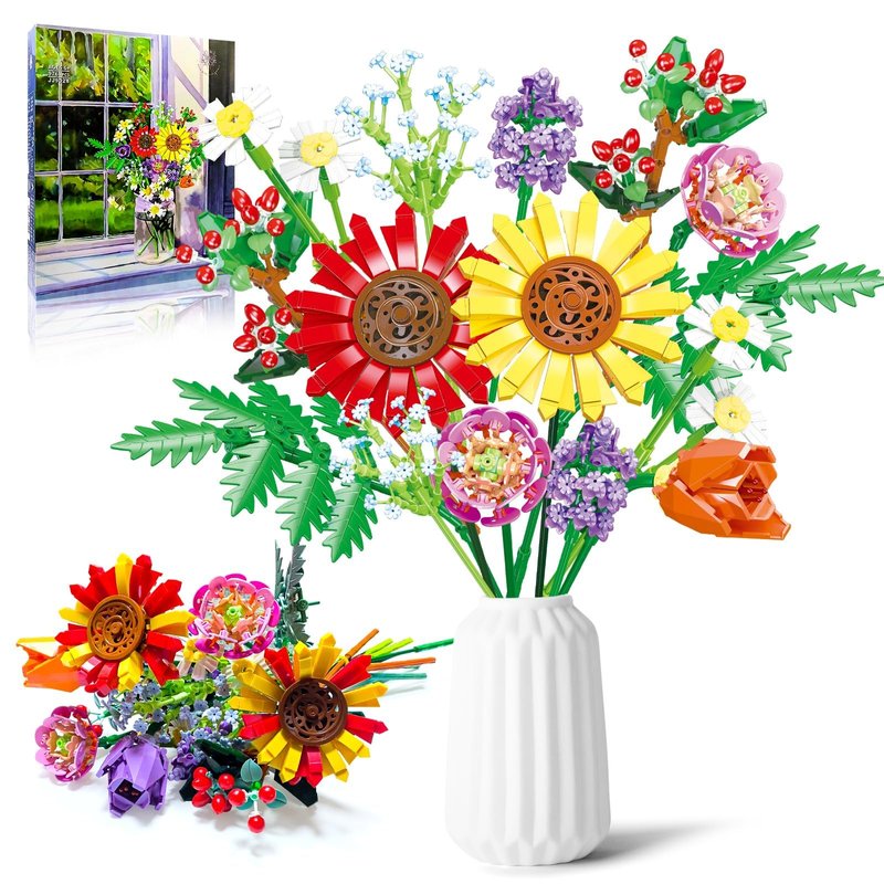 - DIY FLORAL DECOR: This bouquet block has a unique design, can be displayed in your own vase as a centerpiece of home decor, add your life to romantic beauty and vitality. It will not wither throughout the year. Enhancing happiness starts with having a bunch of building block flowers