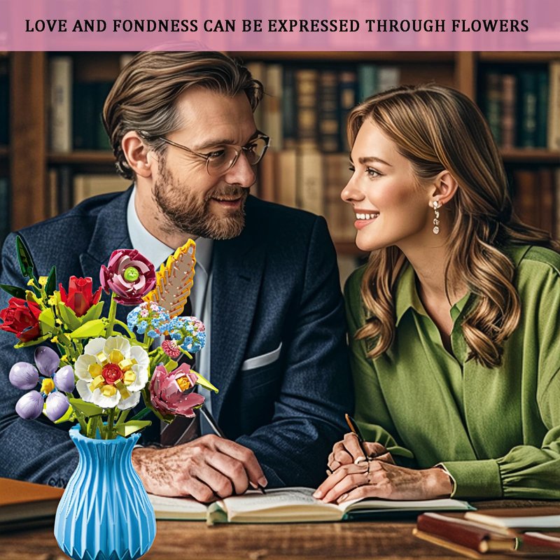 - 🌹 BOUQUET BUILDINGS WITH VASE: Our bouquet building blocks come with a vase, no need for you to buy an additional vase. And the simplicity of the vase and the vibrant flowers are eye-catching.