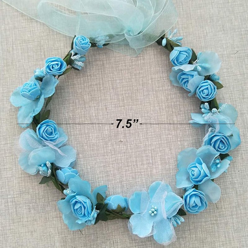 • 【PORTABLE AND COMFORTABLE】 The flower wreath headbands set are portable with mini size and light weight, so you could enjoy it at anytime and anywhere. Made of high quality durable shiny fabric flower and leaf, adjustable size with the ribbon, fit for most head size and age, comfortable and easy to wear with soft touch. You could wear it just for entertainment, or attend a important wedding party. Please don't push them with strong strength. Please hand wash only, don't machine washing