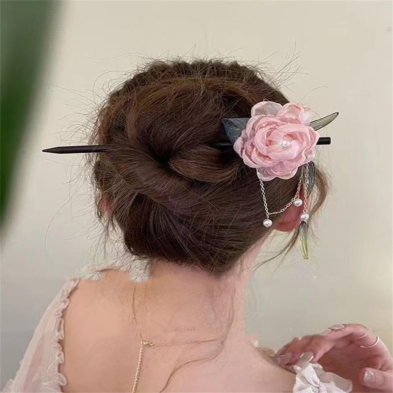 Flower Hair Sticks Rose Hair Chopsticks Hairpin Hair Buns Hair Pins Hair Accessories for Women and Girls 1 Pc 065-#01