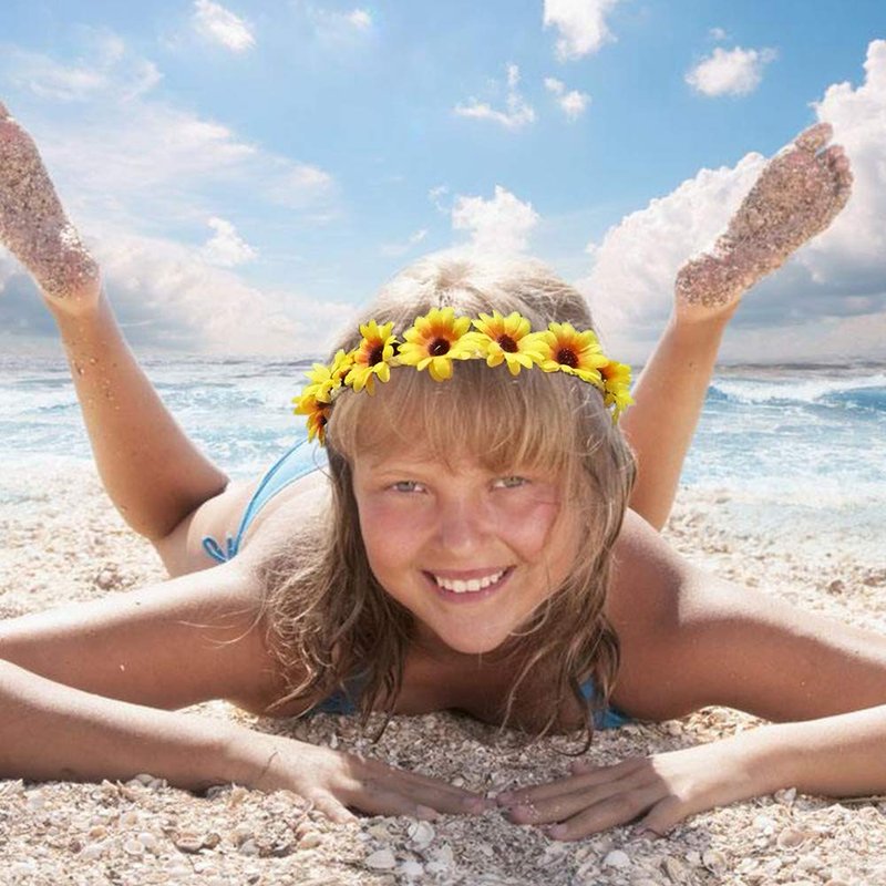 - 【PRETTY SUNFLOWER HAIR BANDS】 This bohemian sunflower crown headband set are adorable and attractive, you will love it so much. It is in shape of sunflower, cute and pretty, sexy and nifty, naughty yet innocent, multiple temptation together wearing this hair bands. It can go with everything in your closet, from your day-to-day office attire, to your evening wear, from your casual workout clothes, to jeans and a T-shirt! Like coat, dress, sweater, skirt, vest, cardigan, scarf, bikini and so on