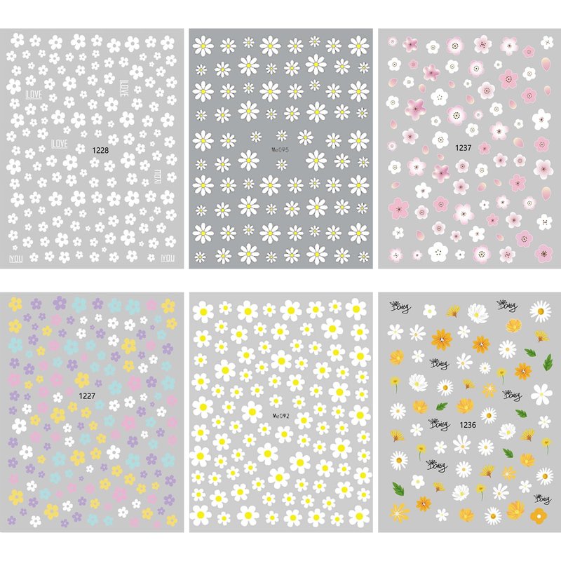 - Flower Nail Stickers: You will receive 6 Sheets different patterns of pink white flower nail stickers, with small flower, daisy, leaf, and other spring summer design, bringing you a different kind of enthusiasm for summer.