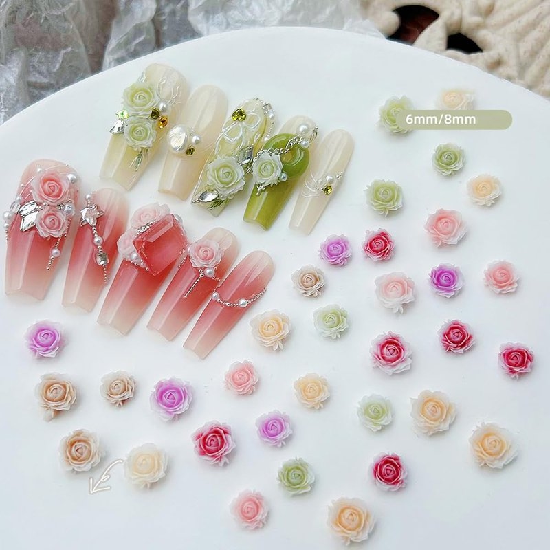 - 【Easy to Use】: Each rose flower is 3D real effect, Suitable for professionals or beginners. Flower nail charms perfect for natural or artificial nails. And can be combined with all UV gel nail polish, DIP powder, and all nail powder.