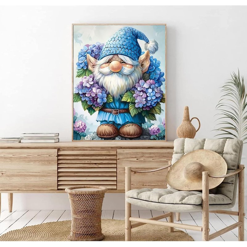 Flowers gnome Paint by Number for Adults Beginner,Hydrangea Paint by Numbers on Canvas,Blue gnome Paint by Numbers Kits with Brushes Pigment Suitable for Home Wall Decoration Without Frame 16x20 Inch