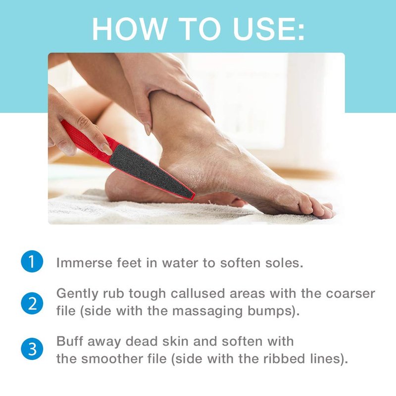 - Easy to Use, Reusable Foot File: Lightweight and handy to allow you to work with ease and gives feet quick smoothness anytime, anywhere! Can be used on both wet and dry foot conditions, too! Just rinse with warm water after use and maximize its long-lasting performance.