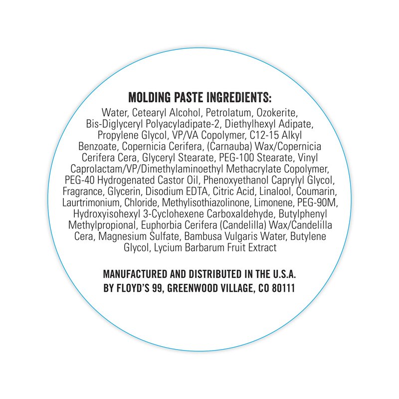A versatile styler for all hair types and lengths, providing the texture, volume and hold that you're looking for! Key Ingredients: Goji Berry Extract, which is Antioxidant rich to promote healthy hair, Candellia Wax, a 100% vegan wax that adds texture to the hair and helps combat scalp irritation, Carnauba wax, which protects and moisturizes hair and scalp. Floyd's Barbershops Stylist Tip: Strong anti-humectant properties serve as a secret weapon for men and women with curls. 3 ounces.