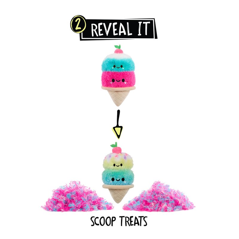 Fluffie Stuffiez Double Scoop Ice Cream Small Collectible Feature Plush, Surprise Reveal Unboxing with Huggable ASMR Fidget DIY Fur Pulling, Ultra Soft Fluff