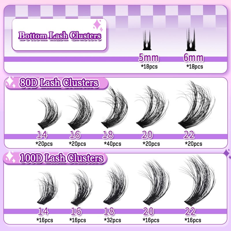 - Style: 80D+100D Lash Clusters with Bottom Lashes