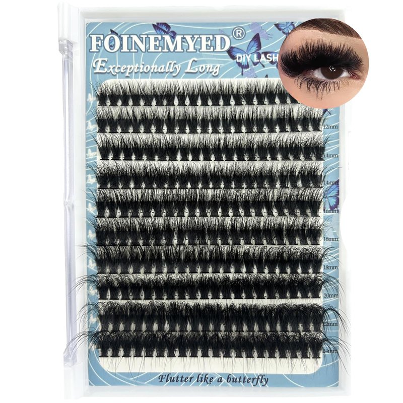 - 【24mm Mink Lashes you have never seen before】: Inspired by the flutter of butterfly wings, our latest Lash clusters are designed with super long length up to 24mm, with 8 lengths (10mm, 12mm, 14mm, 16mm, 18mm, 20mm, 22mm, 24mm) of individual lashes. These blinkers are wispy and fluffy, providing a full and voluminous lash extension look, perfect for creating captivating makeup styles.