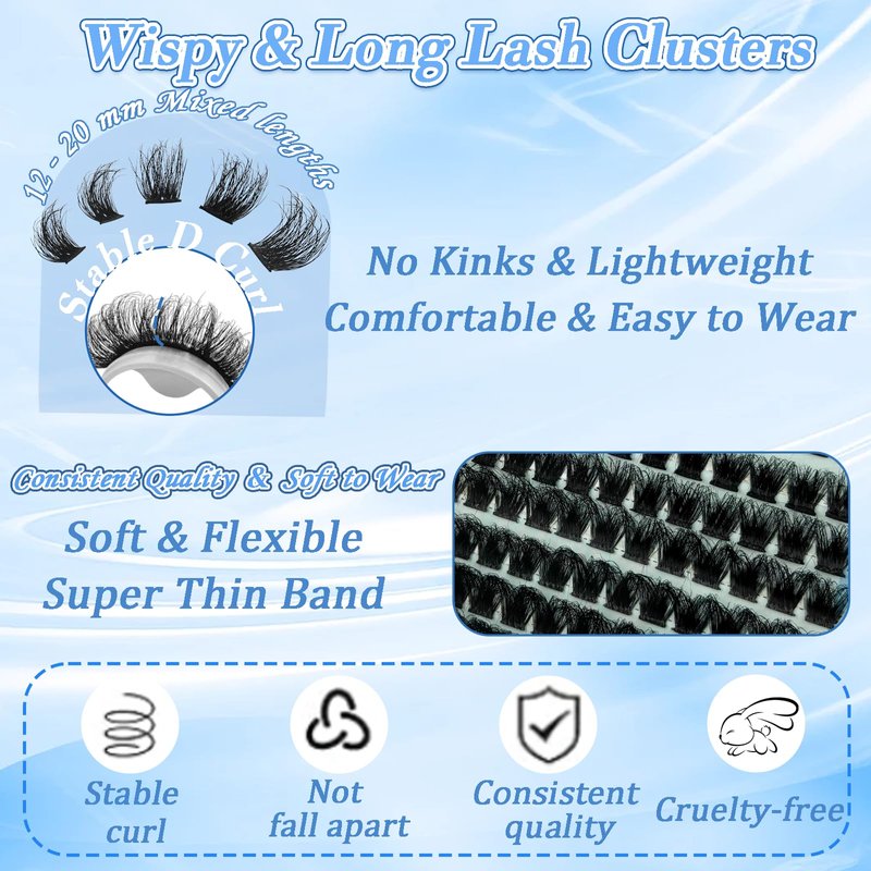 Length: Clusters lashes with mixed 12mm-20mm length.