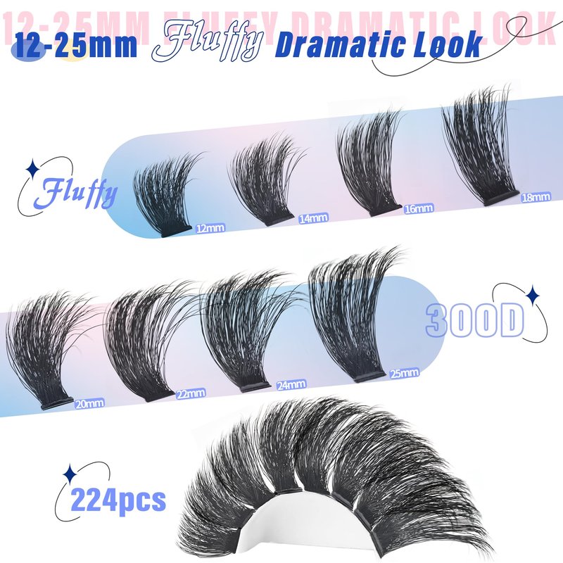 - Color: Fluffy and Thick 300D 12-25MM Lash Clusters
