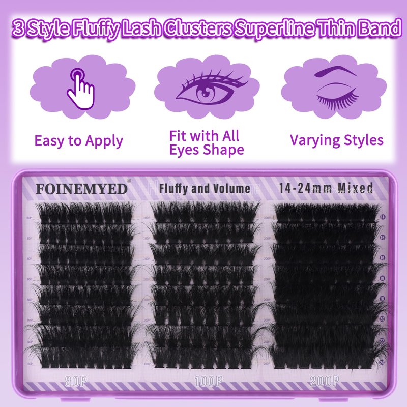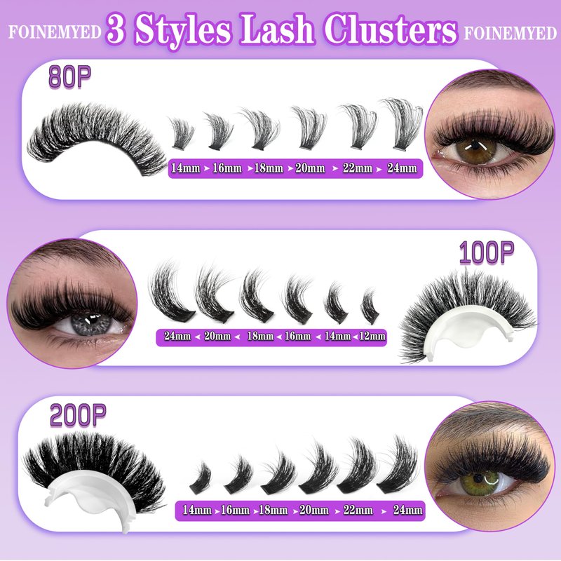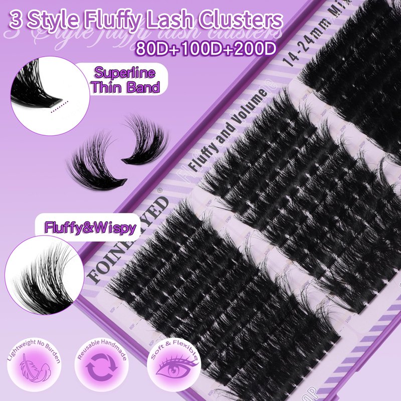 - 【80D+100D+200D Thick Lash Clusters】: Buy 1 pack, get 3 kinds of lashes! Easily Get a gorgeous, fluffy look with our 3 different density of cluster lashes. Fluffy and long individual lash clusters are made from upgraded matte black mink fibers designed for maximum volume. They are so lightweight and soft, making it easier to DIY lashes at home and achieve salon-style results in minutes.