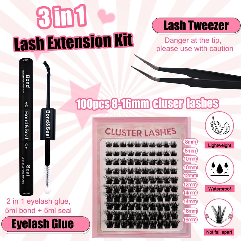 - Great DIY Lash Extension Kit: Our lash kit includes 100 pcs lashes of varying lengths, 10ml bond and seal and 1*lash tweezers, offering all you need to save time and effort with DIY eyelash extensions at home!
