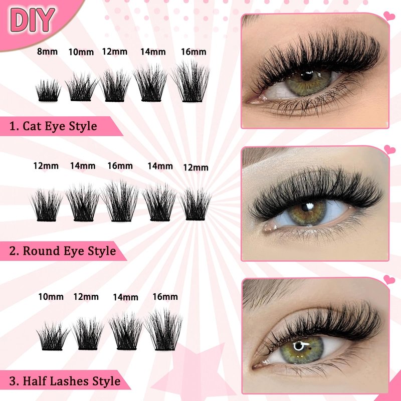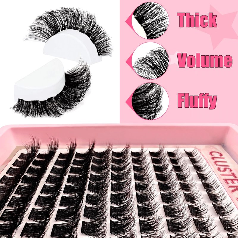 - Fluffy Lash Clusters Kit:These cluster lashes give your eyes a glamorous look and blend seamlessly with your own eyelashes. Considering that everyone's eye shape is unique, you can experiment with various lengths of lashes to DIY different styles.