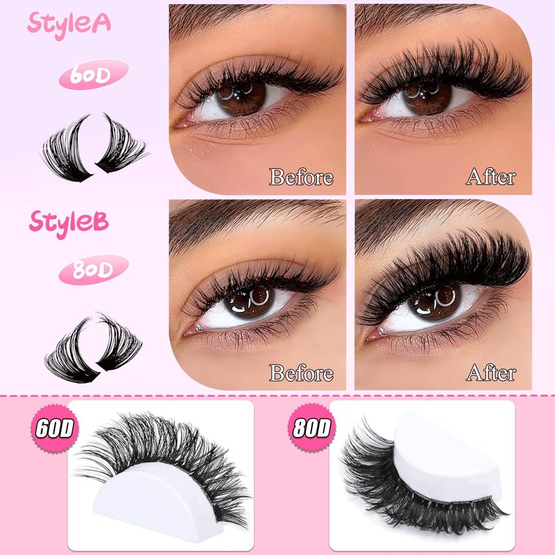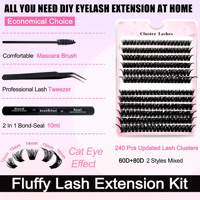 - Fluffy Lash Clusters Kit:These cluster lashes give your eyes a glamorous look and blend seamlessly with your own eyelashes. Considering that everyone's eye shape is unique, you can experiment with various lengths of lashes to DIY different styles.