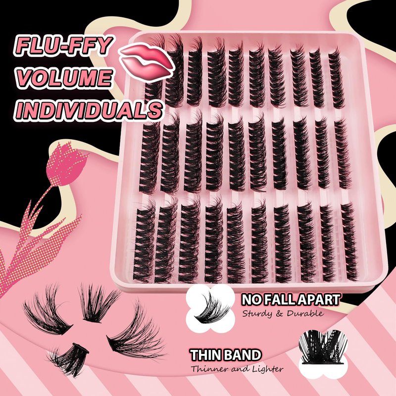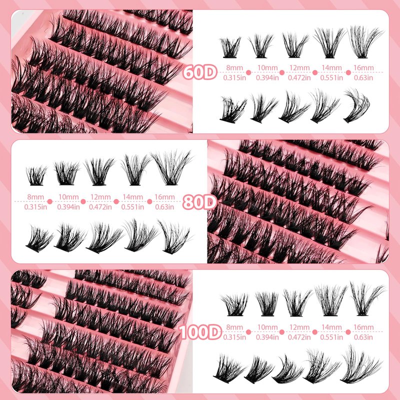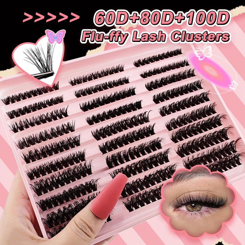 - Fluffy Lash Clusters Kit:These cluster lashes give your eyes a glamorous look and blend seamlessly with your own eyelashes. Considering that everyone's eye shape is unique, you can experiment with various lengths of lashes to DIY different styles.