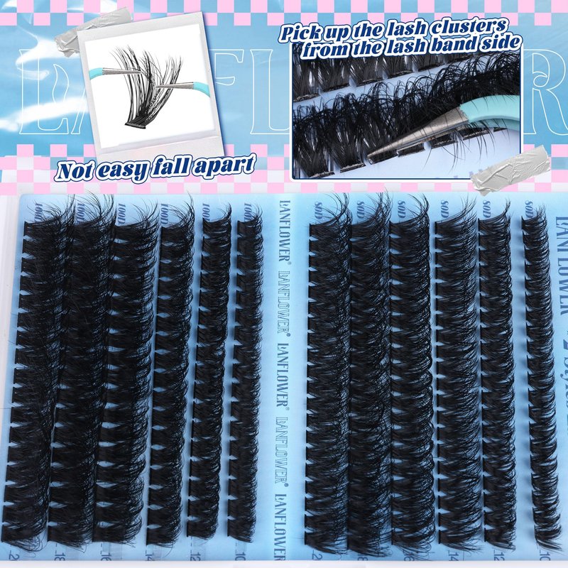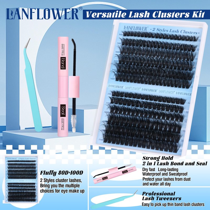 - DIY at Home:DIY your own lash extension look at home to create different eyelash extension effects that are super popular these years. Our waterproof lash clusters kit includes mixed wispy cluster lashes that are easy to apply with professional tools. With Lanflower lash extension kit, you have more beauty options to choose from in the comfort of your own home.